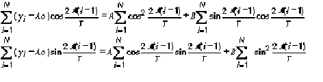 Aj и Bj става по МНМК, като левите страни на уравненията на съответната система са същите както в (*), но вместо един период T, се задават m на брой такива. Последният се избира по преценка на изследователя и би могъл да бъде от 1, ако е включен само доминиращ цикъл, за който R удовлетворява изискването на F-теста за k1=N - 1 и k2= 2m степени на свобода, до всички достоверни цикли от T - R корелограмата, за които R/SR >1.96. Схемата на работа и подобна на тази при многофакторния регресионен анализ. Моментите t приемат за стойности номерата на съответните числени данни във временния ред, т.е. 0,1 , 2 .........